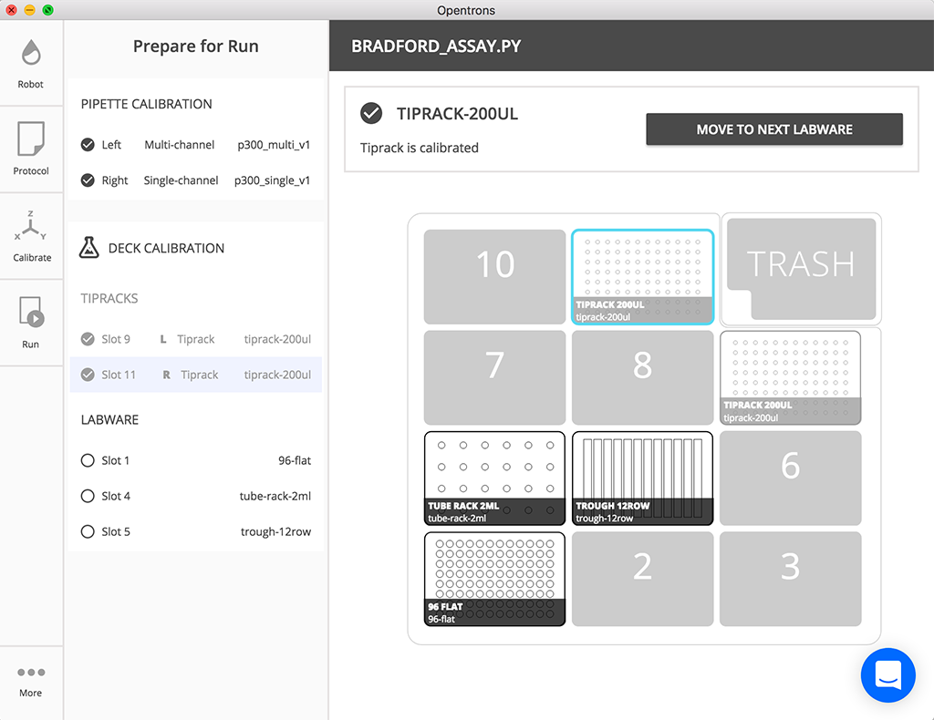 Easily upload a protocol, calibrate positions, and run your experiment from your computer.